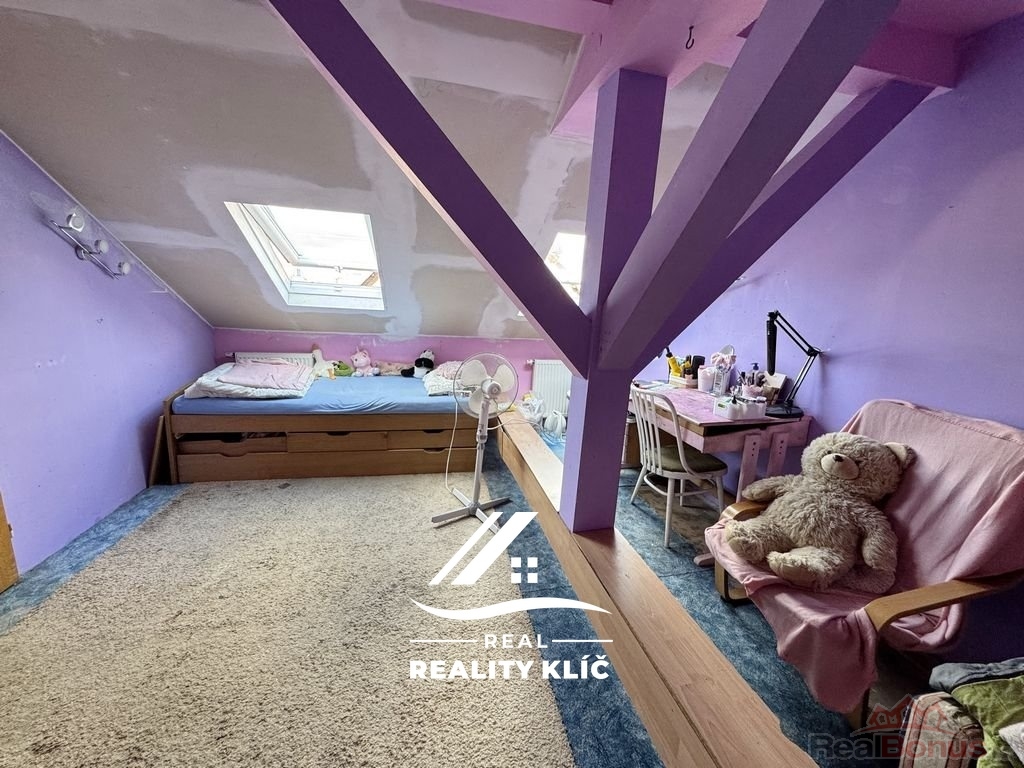 Podkrovní pokoje: světlé prostory se střešními okny, možnost využití jako ložnice, dětské pokoje či pracovna.