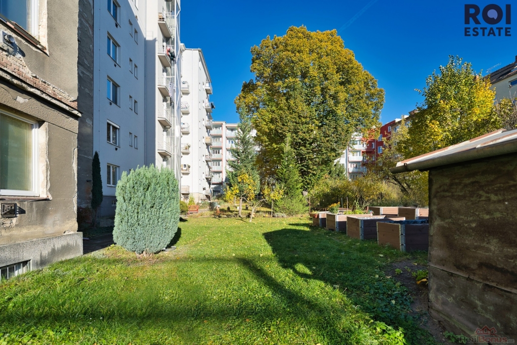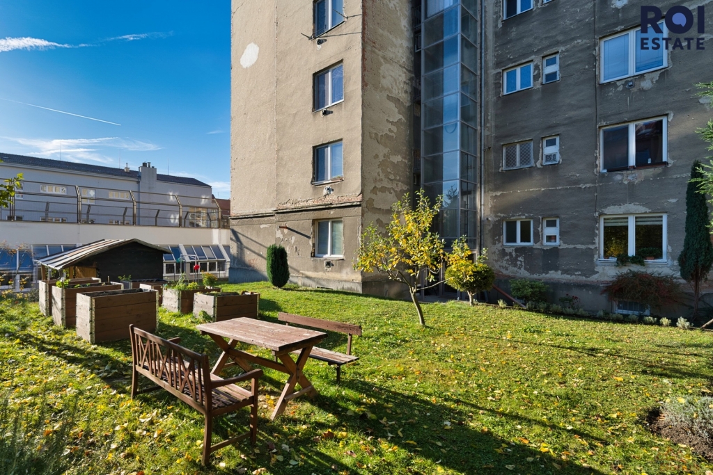 Dům je obklopen zelení, za ním se nachází zahrada, kterou mohou nájemníci využívat.