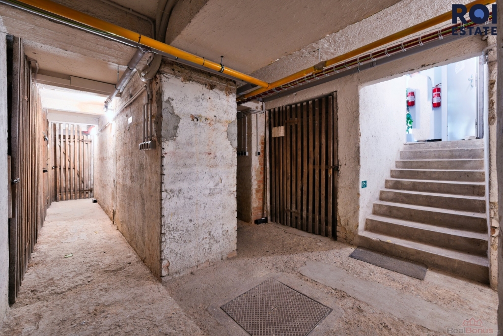 K bytu náleží také prostorný sklep, který poskytuje další úložný prostor.
