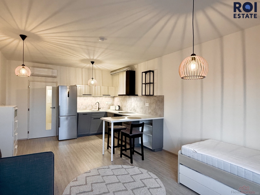 Hledáte bydlení, které má styl, duši a je naprosto bez starostí? Nabízím k podnájmu krásný, kompletně a vkusně zařízený byt 1+kk v 5. NP moderní novostavby na ulici Reissigova v brněnském Králově Poli. Tento byt byl navržen s důrazem na detail a maximální využití prostoru, což potvrzují i unikátní designová svítidla, která večer vytvářejí na stěnách jedinečnou hru světel a stínů.