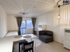 V interiéru na vás čeká plnohodnotné vybavení, takže si stačí přinést jen osobní věci. Obývací část disponuje pracovní plochou, šatními systémy a především praktickou rozkládací postelí, která přes den šetří místo a v noci zajistí komfortní spaní. Moderní kuchyně v elegantních šedých tónech s barovým pultem je osazena kvalitními spotřebiči a velkou nerezovou lednicí. Maximální komfort v každém ročním období pak zajišťuje instalovaná klimatizace.