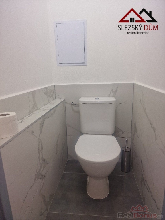 Koupelna je po celkové rekonstrukci s vanou, která nebyla použita, nové jsou i ostatní zřizovací předměty.