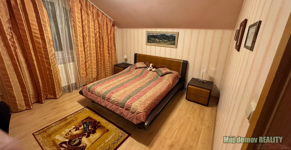 K dispozici je garáž pro dvě auta + parkovací stání, v garáži navíc lednice a mrazák.