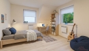 Obě místnosti jsou neprůchozí a orientované do klidové zóny za domem. Severní orientace znamená, že v létě nebudete spát v sauně. Jedno dítě, dvě děti, nebo home office v jednom pokoji? Vyřešeno.