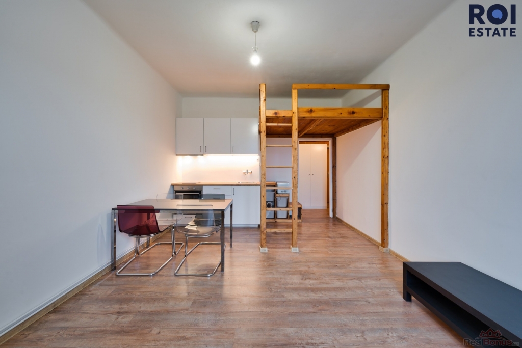 Nabízíme byt 1+kk k pronájmu v lokalitě Kbelská v Praze 9 - Hloubětín. Byt se nachází ve 3. patře a má užitnou plochu 30 m2. Stav objektu je dobrý a byt je vybaven kuchyní, koupelnou s vanou a na spaní má zvýšené patro. Digestoř, trouba, varná deska, vč. nábytku na fotkách. Byt je ideální pro jednotlivce či mladý pár.