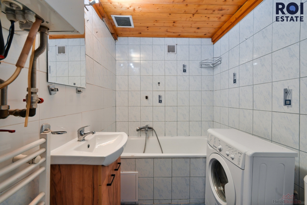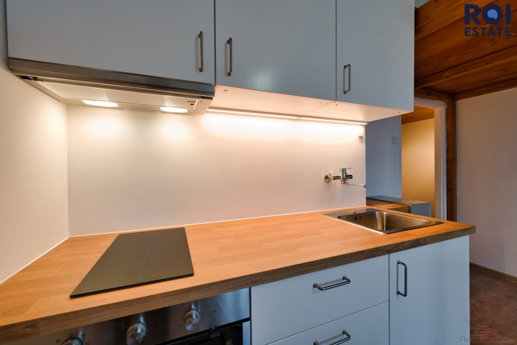 V bytě je nová kuchyňská linka, koupelna s vanou a na spaní si po příkrém ! žebříku vylezete na zvýšené patro. Digestoř, trouba a varná deska, vč. nábytku na fotkách. Byt je ideální pro jednotlivce či mladý pár.