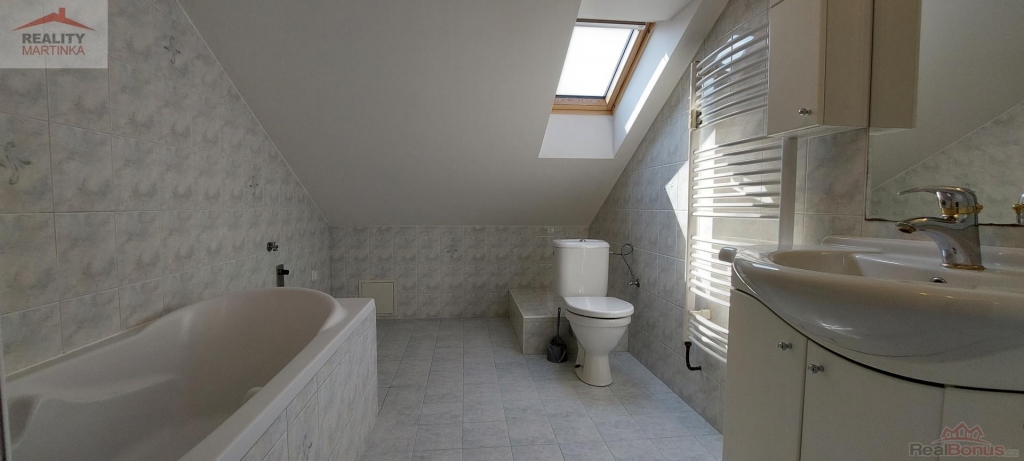 Nabízíme k pronájmu velký podkrovní byt o dispozici 2+1 s vyhrazeným parkovacím místem ve Valašském Meziříčí na ul. Máchova. Byt o podlahové ploše 86 m2 se nachází ve třetím patře cihlového bytového domu po celkové revitalizaci v lokalitě blízko náměstí. V bytě je kuchyň s kuchyňskou linkou s indukční varnou deskou, el. troubou, digestoří a vestavěnou lednicí, prostorný obývací pokoj, samostatná ložnice a koupelna s vanou, umyvadlem se skříňkou, zrcadlem se skříňkou, žebříkovým radiátorem a WC kombi. K bytu náleží sklepní kóje a jedno parkovací místo na novém soukromém parkovišti u domu. Parkování v uzavřeném parkovišti s dálkový ovládáním vjezdové brány. Cena nájmu 14.000 Kč/měs. + zálohy na služby 4.000 Kč/měs. + elektřina cca 800 Kč/měs., kauce ve výši 28.000 Kč. K pronájmu velký cihlový byt 2+1 s vyhrazeným parkovacím místem v klidné lokalitě v centru Valašského Meziříčí.