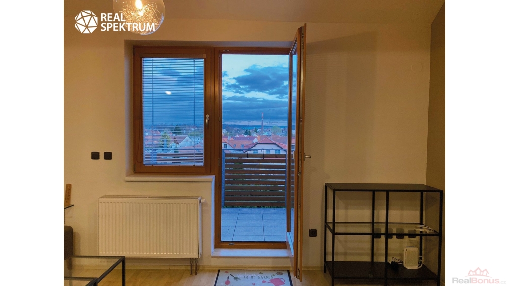 Velkou předností bytu je balkon a především prostorná terasa s příjemným výhledem, která nabízí ideální místo pro relaxaci. Dispozičně byt nabízí vstupní chodbu, obývací pokoj s kuchyňským koutem vybaveným moderní kuchyňskou linkou, dvě ložnice, koupelnu, samostatné WC a sklep. Samozřejmostí je dostatek úložných prostor.