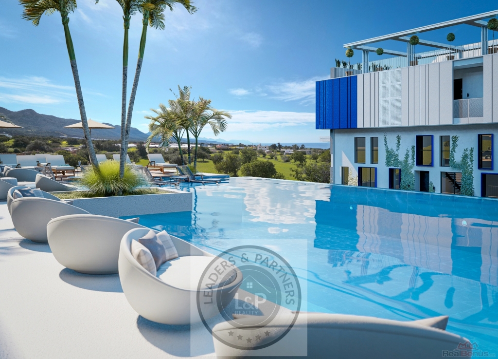 Moderní komplex v oblasti Tatlis s výhledem na Středozemní moře. Komplex se vším, co potřebujete pro kvalitní dovolenou a samozřejmě k pronájmu, vám nabídne celou škálu služeb. Zcela nový přístup kanceláře developera k pronájmům a další bonusy pro hosty, jako je půjčovna aut, supermarket, lázně, kadeřnictví, evropská restaurace, Pool BAR u venkovního bazénu, tenisový kurt, basketbalové hřiště, venkovní cvičební plocha.