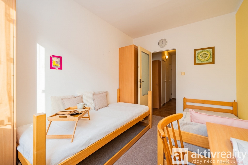 Prodej družstevního bytu 2+kk v Neratovicích, ulice Na Výsluní. nachází se v 1. patře revitalizovaného domu s moderním výtahem a nabízí pohodlný přístup po jediném běhu schodů i dostatek soukromí. Dispozici tvoří vstupní chodba s vestavnými skříněmi, obývací pokoj s kuchyňským koutem a francouzským oknem, samostatná ložnice a koupelna s WC. Všechna okna jsou orientována na jihozápad, díky čemuž je byt světlý po většinu dne. Tepelný i akustický komfort zajišťují předokenní elektrické rolety s možností úplného zatemnění. Byt je udržovaný a ihned obyvatelný. Jádro je původní, obložené sádrokartonem a obklady, podlahy jsou novější, rozvody elektro původní. K bytu náleží komora přímo u vstupu a sklepní kóje. V domě je k dispozici kolárna a prádelna. Parkování je možné u domu i v okolí. Lokalita nabízí klidné bydlení s výbornou dostupností obchodů, škol i školek. Samozřejmostí je kompletní občanská vybavenost a velmi dobré spojení do Prahy autobusem i vlakem.