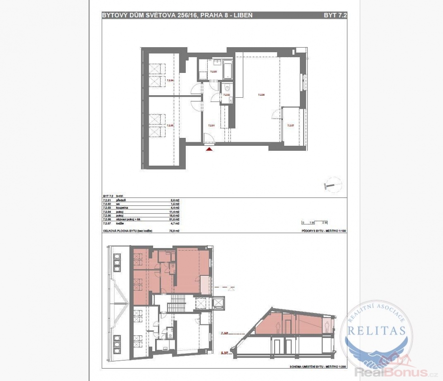 K pronájmu nabízíme zcela nový, dosud neužívaný byt 3+kk o ploše 75,9 m s balkonem 4,7 m, situovaný v kompletně zrekonstruovaném bytovém domě ve vlastnictví majitele na adrese Světova 16.
