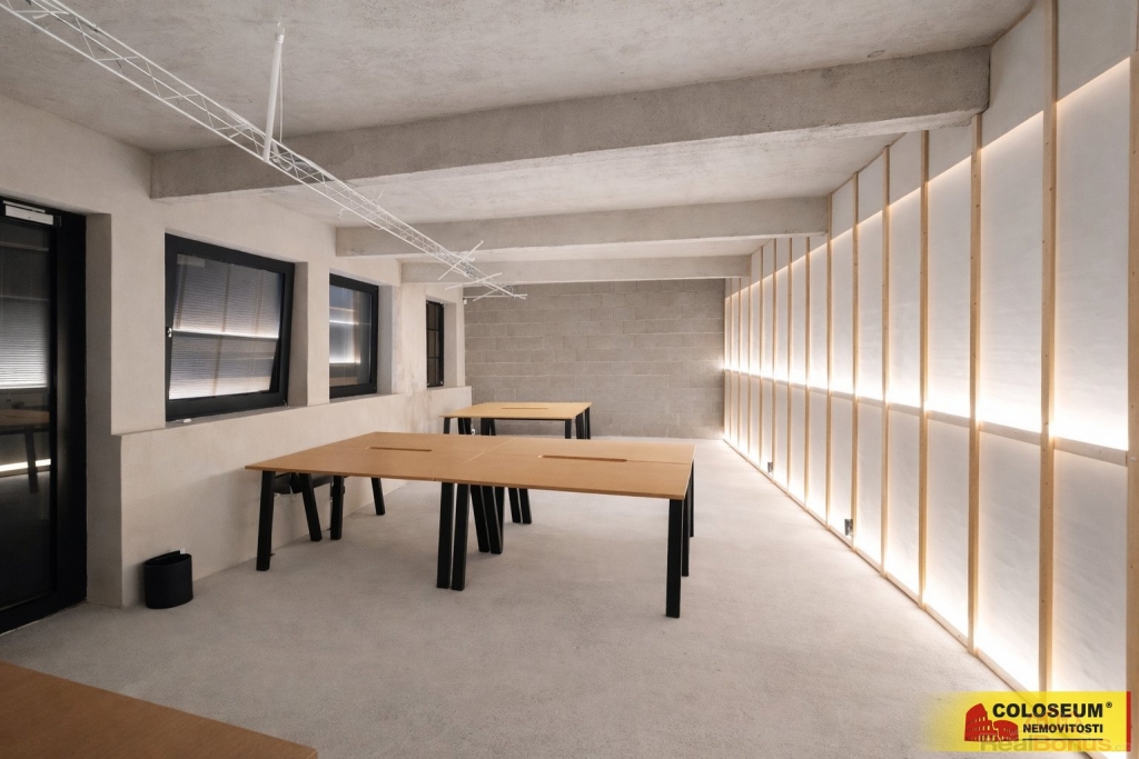 Dispoziční řešení umožňuje kombinaci samostatných kanceláří, otevřeného pracovního prostoru, zasedací místnosti i pohodlného zázemí pro zaměstnance. Prostory jsou světlé, flexibilně uspořadatelné a působí velmi reprezentativně.