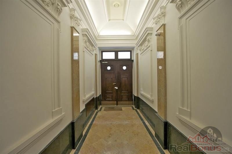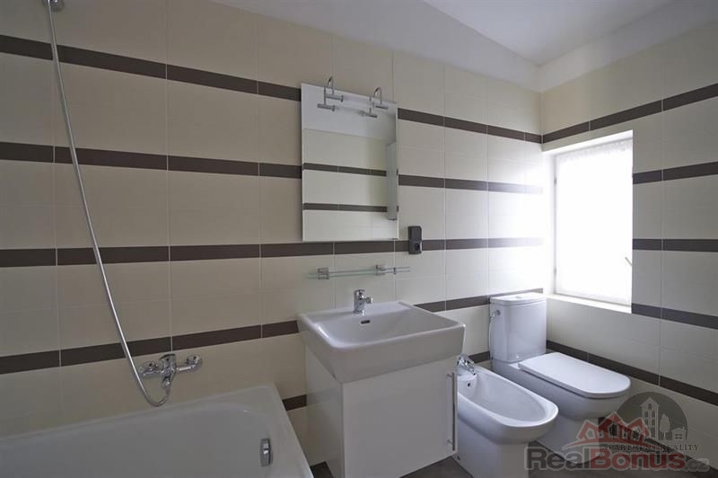 Byt se sestává z obývacího pokoje s kuchyňským koutem, 2 ložnic, 2 koupelen + WC, v 5 patře. Byt je zařízený. Nájem: 25 000, Kč + 1100, Kč domovní služby za osobu (vodné, stočné, úklid domu, výtah, osvětlení v domě atd.) + revize kotle 220 Kč/měsíc + elektřina a plyn na vlastní náklady. Volný ihned. Domácí zvíře dovoleno.