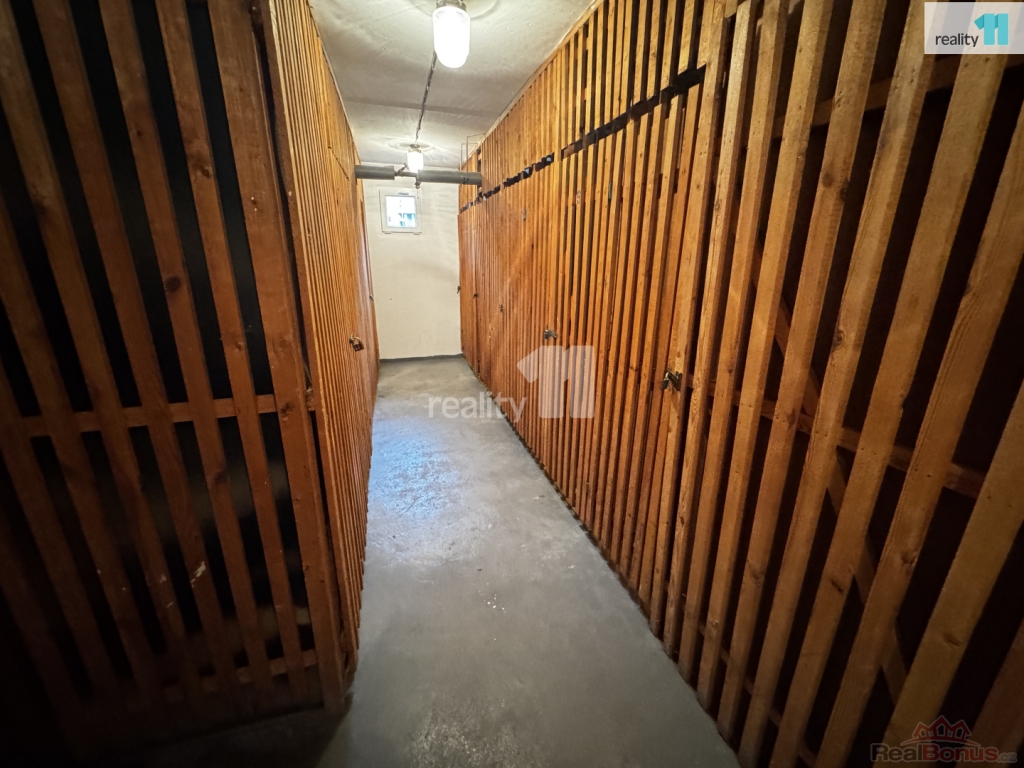 V předsíni se nachází prostorná komora/skříň sloužící jako úložný prostor. K bytu náleží sklep v suterénu.