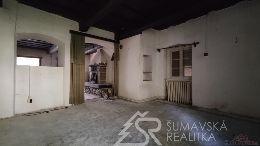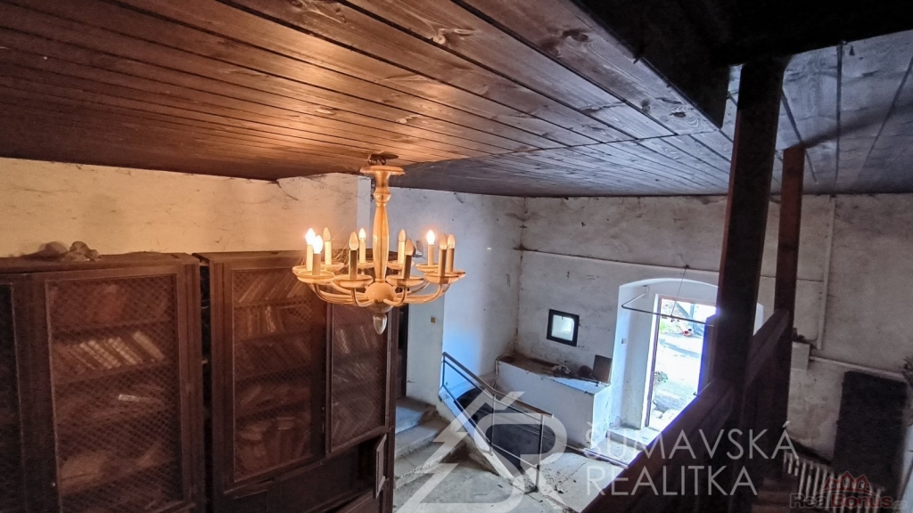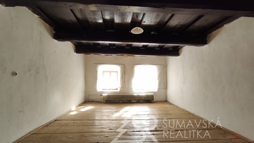 Popis: původní měšťanský dům s historií, o níž svědčí řada prvků jako zázrakem zachovaných v interiérech. Dům nevykazuje statické poruchy, ani nepřiměřenou vlhkosti když nebyl v posledních letech obýván. Pod střechou z plechových pásů je krov v dobrém stavu. Dřevěná okna i podlahy původní. Mohutné obvodové a nosné zdivo, zaklenutí a niky, černá kuchyně, trámové stropy to vše vytváří autentické prostředí jako by dům chtěl vyprávět svůj příběh