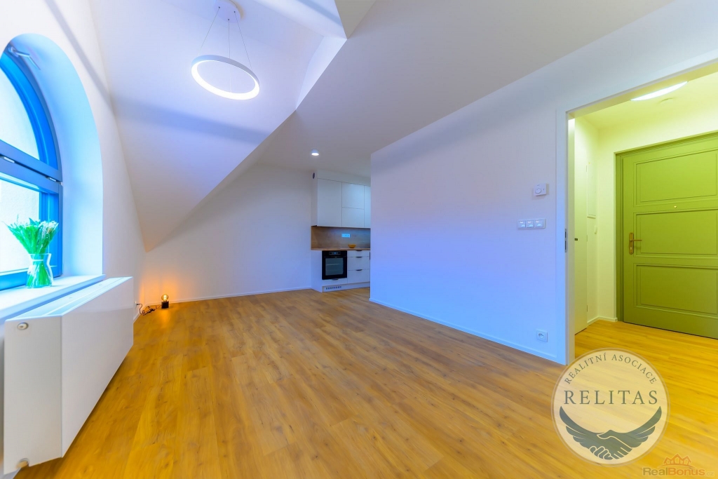 Byt vznikl v rámci náročné rekonstrukce domu, která zahrnovala výstavbu nového výtahu, nové technické rozvody i vznik nových bytových jednotek v kvalitě současné novostavby.