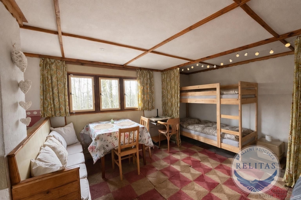 Zvenku Popelka, uvnitř útulný prostor, který Vás překvapí! Nabízím Vám chatu v Černolicích, 24 km jižně od Prahy směr Mníšek pod Brdy, v lese, v klidu, uprostřed vzrostlých stromů. Ideální pro houbaře a milovníky jednoduchého bydlení v přírodě. V lokalitě se nachází jen tři menší chaty, toto je jedna z nich. Vzdálenost mezi nimi je desítky metrů, pozemek kolem nich historicky oplocen drátěným pletivem, což vymezuje hranici pro vstup do této části lesa a zabraňuje nepovolaným chodit až k chatě. Parkování 5 minut chůze od chaty, na okraji obce. Přijedete po asfaltové komunikaci, zaparkujete na začátku lesa, pak kousek pěšky k chatě. Vnitřní prostor chaty o výměře 24 m2 zahrnuje jednu velkou místnost s kuchyňským koutem, půdní podkrovní prostor plus sklep, do kterého se dostanete po žebříku z vnitřku chaty, otevíratelným poklopem v podlaze. Chata se nachází na obecním pozemku, k výhradnímu užívání má od obce k dispozici plochu 90 m2, cena pronájmu obecního pozemku 1.097 Kč/celý pozemek/rok, odvoz odpadu 950 Kč/rok. Chata je ve velmi dobrém stavu, majitel prováděl průběžnou údržbu. Postavená je z panelů a částečně dřevěného sendviče, do kterého je zasazeno okno s výhledem do lesa, s uzavíratelnou kovovou okenicí. Místo sendviče je možné zasadit francouzské okno a mít tak ještě větší kontakt s přírodou. Před chatou je menší terasa pro umístění lehátek, křesel, stolečku na knihu či kávu. Voda, kanalizace ani elektřina nejsou zavedeny, vaří se na dvouvařiči na 2kg PB bombu, v chatě funguje nové chemické WC. Vytápění zajišťují krbová kamna na dřevo. Možno chatu vybavit solárními panely, elektrocentrálou, kvůli vodě vybudovat studnu, místo wc zvážit venku kompostovací toaletu. Všechno vybavení chaty tak jak ho vidíte na fotografiích je zahrnuté v ceně chaty, současný majitel přenechává chatu s veškerým nábytkem, vybavením, zásobeným sklípkem, drobnými předměty i s vybavením k údržbě chaty. Nepromeškejte příležitost zajistit si oázu klidu poblíž hlavního města. V obci Černolice žije 576 obyvatel. Za obcí se nacházejí Černolické skály, chráněná přírodní rezervace. Během procházek můžete navštívit i rozhlednu Korunka. Dokonalý únik z města či digitální detox.