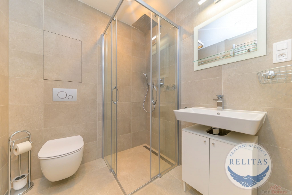 Exkluzivně zprostředkuji pronájem zcela nového, elegantně zařízeného a dosud neobývaného bytu 2+kk, o vnitřní ploše 46,5 m + 10,4 m balkon v 4. patře novostavby z roku 2024 v Malešické ulici, Praha 3 - Žižkov. Byt se sestává z předsíně, obývacího pokoje s kuchyňským koutem, ložnice, komory, koupelny se sprchovým koutem a toaletou. Prostorný balkon je přístupný jak z ložnice tak obývacího pokoje. Okna jsou vybavena elektrickými vnějšími žaluziemi. V bytě je klimatizace s rekuperací, v celém bytě je podlahové topení. Byt je vybaven bezpečnostními protipožárními dveřmi a alarmem. V přízemí domu lze využívat společnou kočárkárnu/kolárnu. Byt je nově vybaven elegantním nábytkem podle návrhu interiérového studia. V kuchyni je myčka nádobí, horkovzdušná trouba s mikrovlnnou funkcí a indukční varná deska. V komoře se nachází pračka se sušičkou.