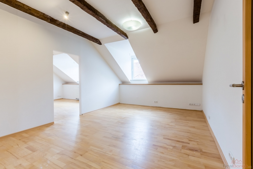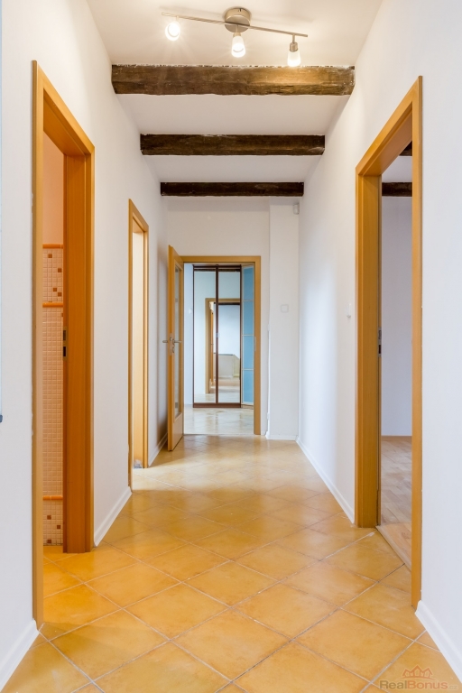 Nabízíme k pronájmu nadstandardní mezonetový byt o dispozici 6+1 a velikosti 174 m2. Byt se nachází v samém centru Slaného, v ulici Třebízského, v cihlovém měšťanském domě. Bytová jednotka zabírá celé první patro a podkroví domu a tvoří tak jedinou bytovou jednotku v domě.