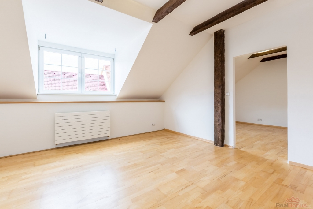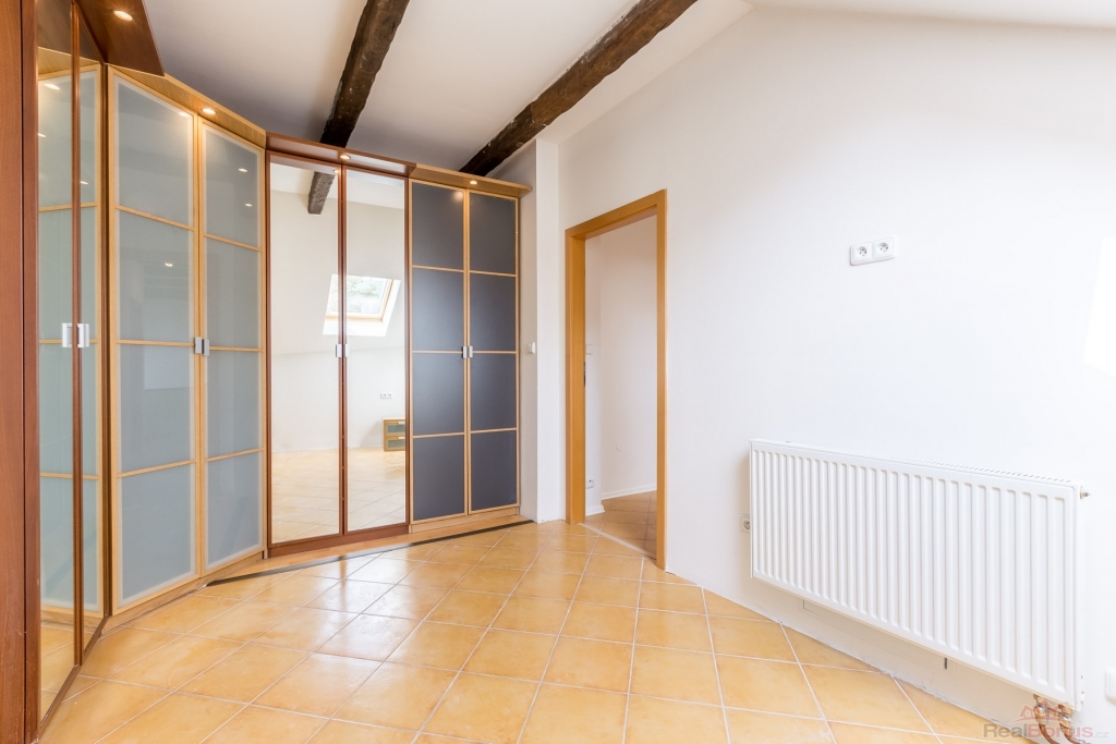 Nabízíme k pronájmu nadstandardní mezonetový byt o dispozici 6+1 s možností využití jako kanceláře. Celková velikost je 174 m2. Nemovitost se nachází v samém centru Slaného, v ulici Třebízského, v cihlovém měšťanském domě. Jednotka zabírá celé první patro a podkroví domu.