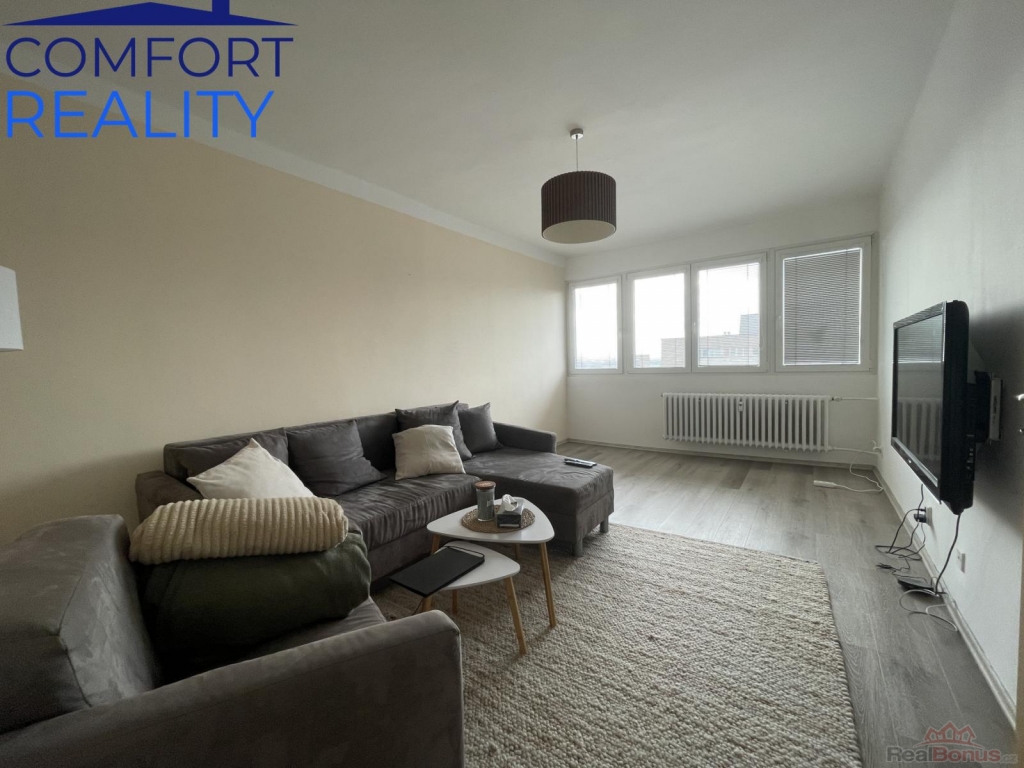 Interiér prošel před třemi lety velmi vkusnou modernizací. Vyzděné bytové jádro ukrývá koupelnu se sprchovým koutem, kuchyně je osazena atraktivní linkou s vestavnými spotřebiči a celým prostorem prochází sjednocená vinylová podlaha. Promyšlené úložné prostory v předsíni zajišťuje prostorná šatní skříň na míru. Díky jižní orientaci je byt po celý den zalitý sluncem a působí velmi útulně.