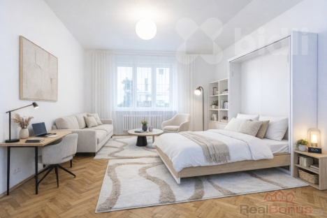 This 1-bedroom studio apartment (46 sqm) has undergone a complete renovation, including all electrical, water, and waste systems. Preserved original features add character and reflect the authentic atmosphere of Letná.