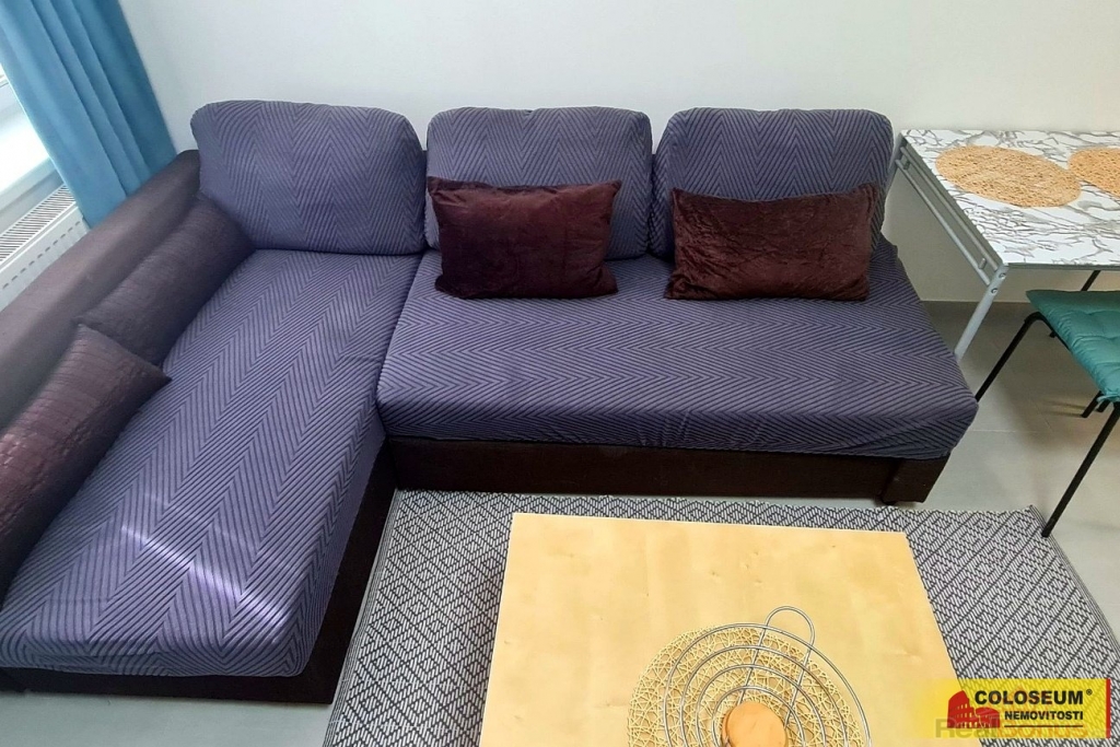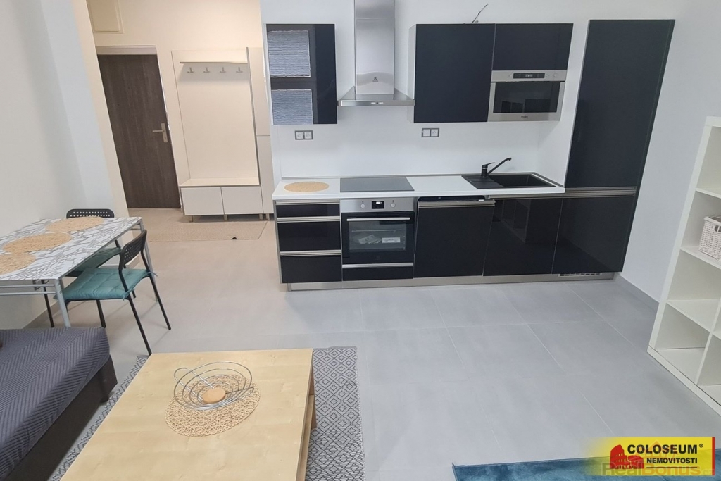 Dispozice bytu je řešena prakticky a účelně. Obytná část je propojena s kuchyňským koutem vybaveným lednicí, varnou deskou a úložnými skříňkami. Celý interiér působí čistě, vzdušně a připraveně k okamžitému užívání. Součástí vybavení je klimatizace a po domluvě je možná i úprava či doplnění nábytku.