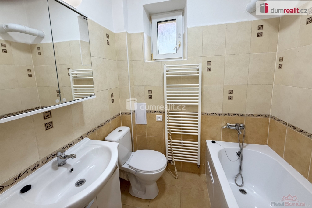 + kauce, + energie, + provize RK, Dumrealit.cz Vám zprostředkuje zprostředkuje exkluzivně pronájem bytu 2 + kk ve vyvýšeném I.NP. revitalizovaného cihlového domu v žádané lokalitě města Frenštát pod Radhoštěm. Byt je po dílčí velmi vkusné rekonstrukci - plastová okna včetně žaluzií, plovoucí podlahy a dlažba, nová kuchyňská linka a interiérové dveře, rozvody vody v plastu, elektroinstalace v mědi. Vlastní plynový kotel na vytápění a ohřev vody - nízké náklady na bydlení. Slunný obývací pokoj volně navazuje na kuchyňský kout s kuchyňskou linkou včetně vestavných spotřebičů (el. trouby, varné desky, digestoře). Prostorná koupelna společná s WC, vybavena vanou, umyvadlem, koupelnovým nábytkem a topným žebříkem. Okna do vnitrobloku, velmi klidná lokalita. K bytu náleží prostorná sklepní kóje a užívání společných prostor. Za domem možnost vlastní zahrádky - posezení, pěstování rostlin a zeleniny. Veškerá občanská vybavenost pár minut chůze. K ceně nájmu je třeba připočíst zálohy na vlastní energie a služby ve výši cca 4.000,-Kč. Byt volný ihned. Ev. číslo: 652727. Energetický štítek: G