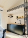 vodu, vestavěnou ledničkou, 2 plotýnkovou eletrickou varnou deskou a digestoří (uhlíkový filtr) , dubová jednodílná vrchní police.