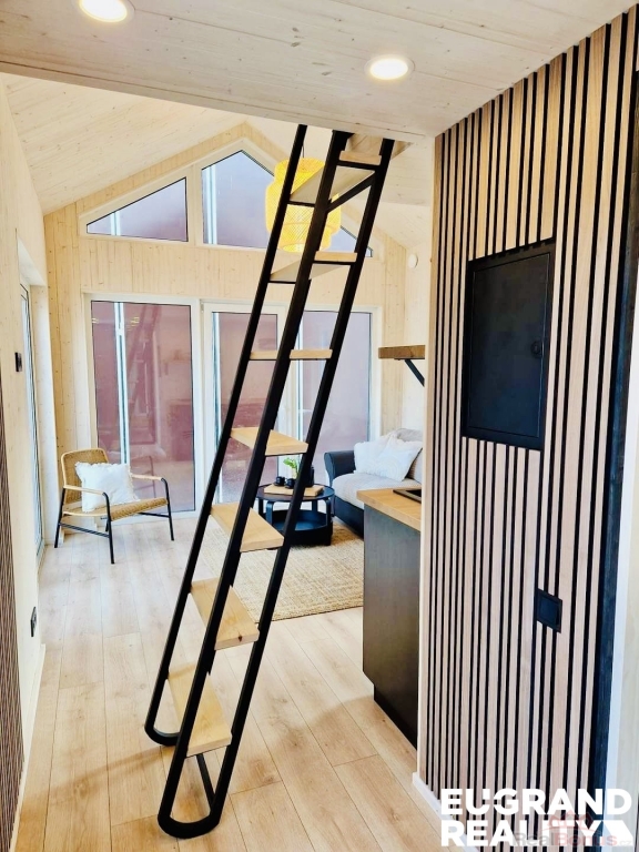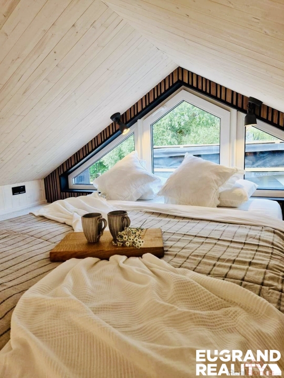 (s podkrovím). Délka ? 6.4 m, šířka ? 3.9 m, výška ? 4.2 m, zastavěná plocha ? 25 m2, koupelna ? 3.9 m2, obývací pokoj s kuchyní ? 15.6 m2, spací prostor ? 9 m2.