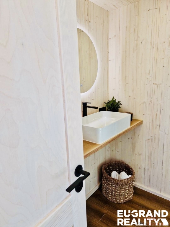 WIFI, zrcadlo s LED osvětlením, dubová deska s umyvadlem a směšovačem vody