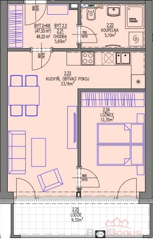 | Užitná plocha | 46 m² |
