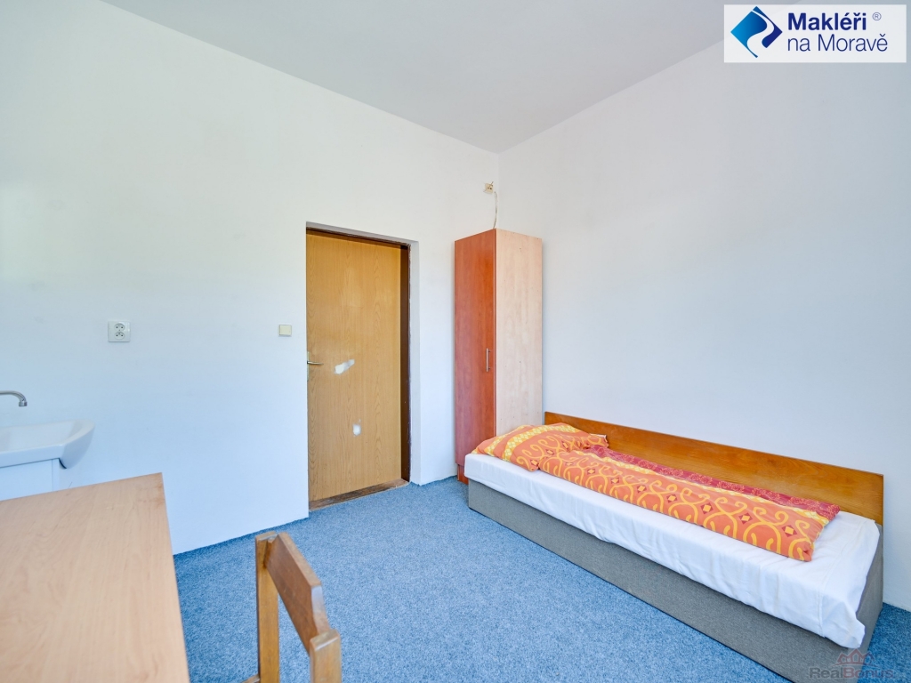 2. NP - 9 pokojů bez soc. příslušenství a 4 apartmány s příslušenstvím (koupelna se sprchovým koutem a WC). Ve středové části mezi těmito pokoji je situováno společné WC a sprchový kout. Z chodby je přístup do půdních prostor. V chodbě je umístěna kuchyňka s vybavením.