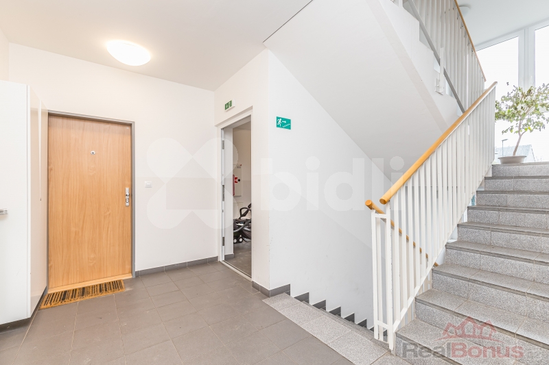 Byt se nachází v přízemí novostavby z roku 2011, má předzahrádku (50 m2) orientovanou do klidného vnitrobloku, je kompletně vybavený nábytkem (viz foto). Bytová jednotka je vytápěna centrální plynovou kotelnou umístěnou v domě, která zajišťuje také ohřev teplé vody. Byt má plastová okna s předokenními elektrickými roletami.