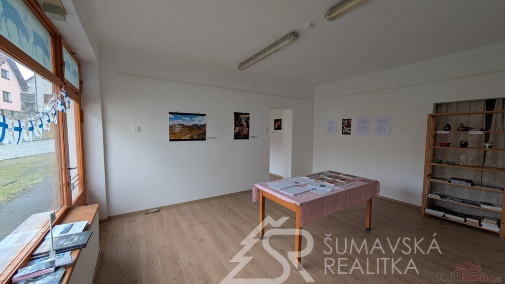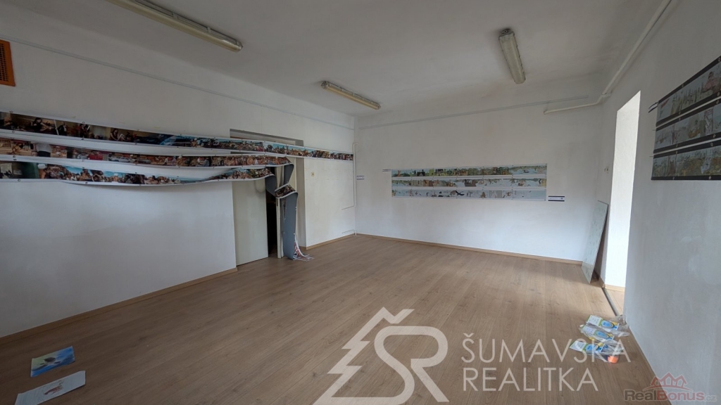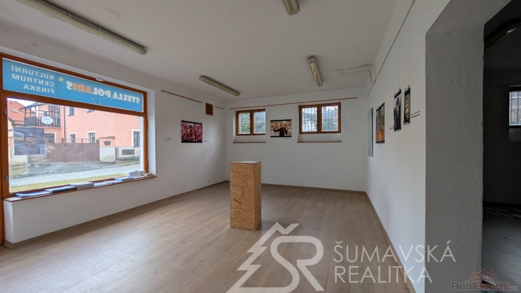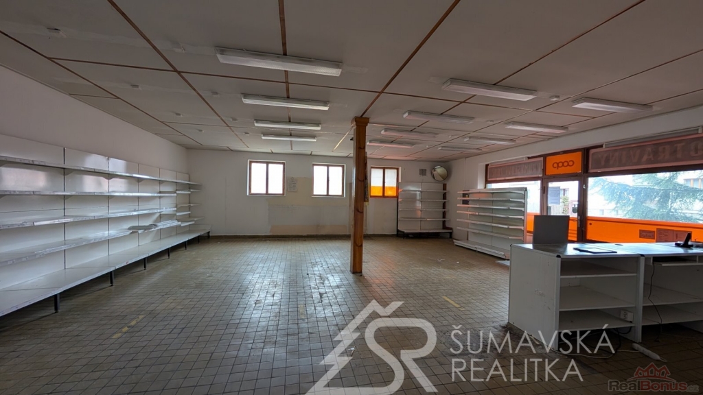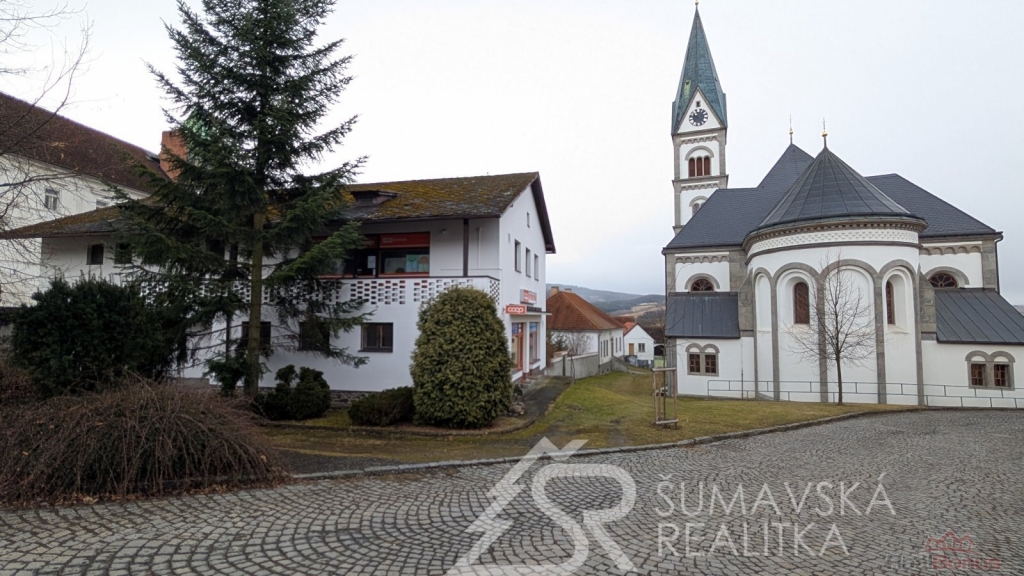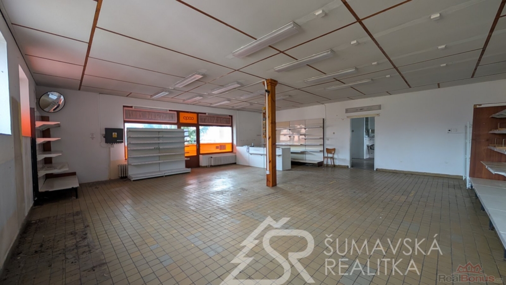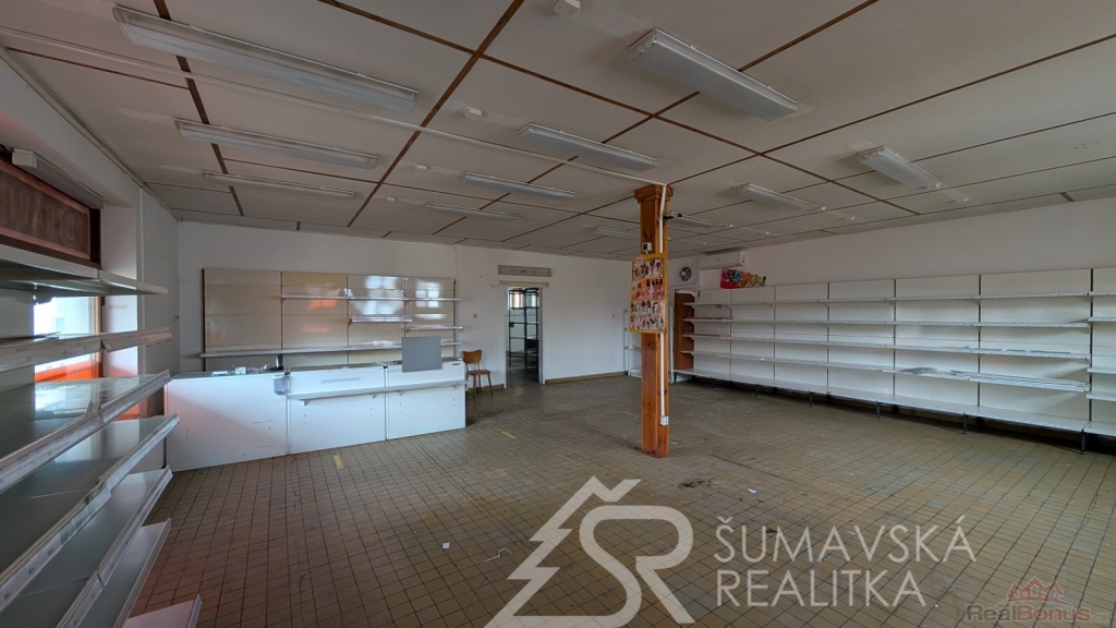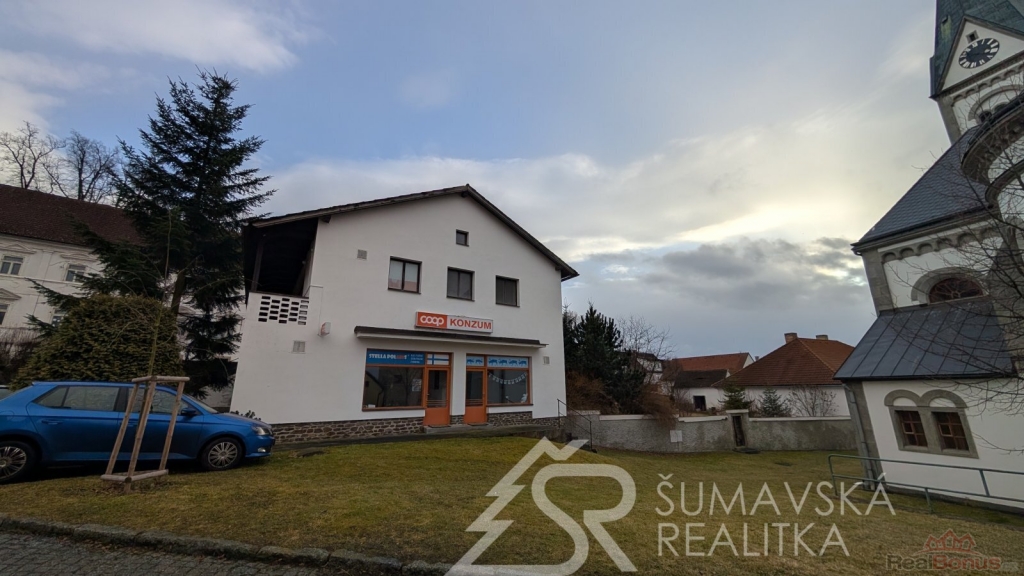 Popis: přímo v centru obce a to mezi kostelem a zámkem se nachází zavedená prodejna potravin. Jedná se o dvoupatrový objekt občanské vybavenosti, kdy v přízemí je jeden nebytový prostor (bývalá masna) který nyní sloužil jako kulturní centrum. V patře je pak rozsáhlý obchod se sklady a zázemím. Budova je klasicky zděná se sedlovou střechou. Celková podlahová plocha je 330 m2. Výhoda je dobré umístění v centru obce s vynikající dopravní obslužností, parkovacími místy a v těsném sousedství autobusové zastávky.