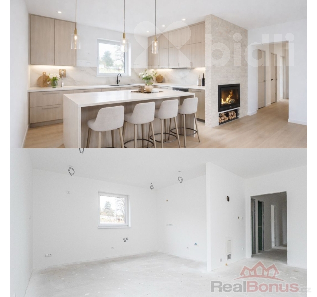 Dům je prodáván ve stavu před dokončením interiéru. Cena nezahrnuje kuchyni, zařizovací předměty, podlahy, interiérové dveře, obklady ani dlažby, aby si nový majitel mohl interiér dokončit dle vlastního vkusu a rozpočtu.