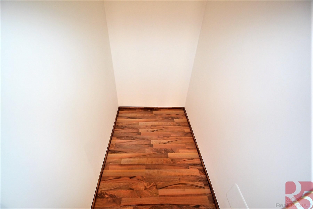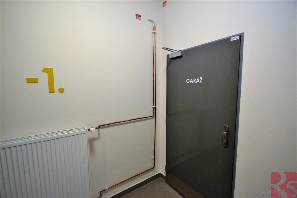 Byt 3+kk v novostavbě z roku 2017, včetně vlastního garážového stání a sklepa v suterénu. Byt je světlý s okny orientovanými na západ, na všech oknech žaluzie. Obývací pokoj s kuchyňským koutem vybaveným vystavěnými spotřebiči, lednice s mrazákem, myčka, el. trouba, varná deska, odsavač par. Z obývacího pokoje je vstup na balkon 9,9m2. Ze vstupní chodby vstupy do koupelny, toalety, komory, obývacího pokoje a dvou ložnic.