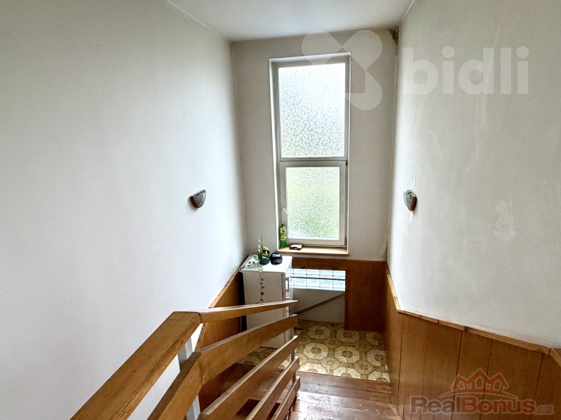 Pod domem se nachází prostorný sklep s garáží (dvoukřídlová zateplená vrata), dále kotelna, sklad, komora a prádelna.