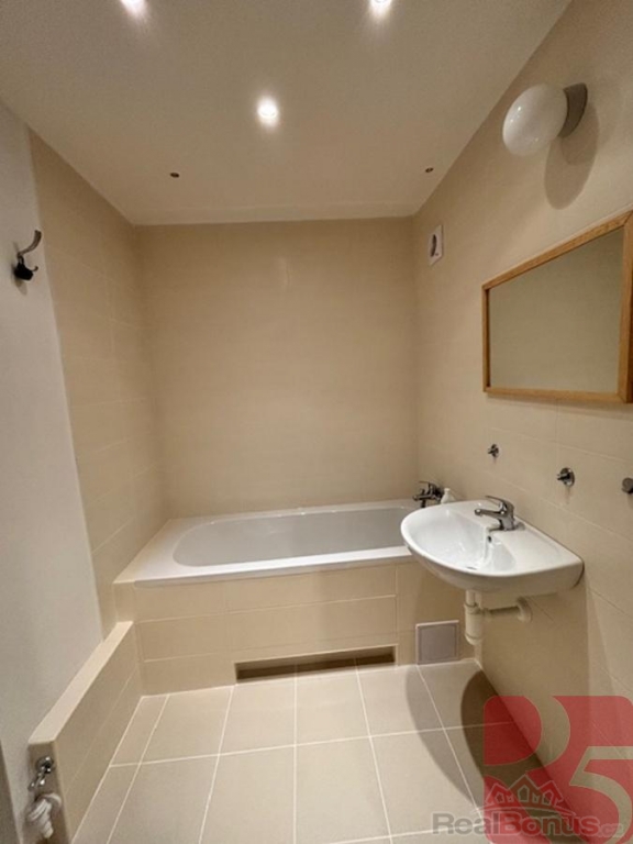 Nová koupelna s vanou, připojení na pračku. Toaleta samostatně.