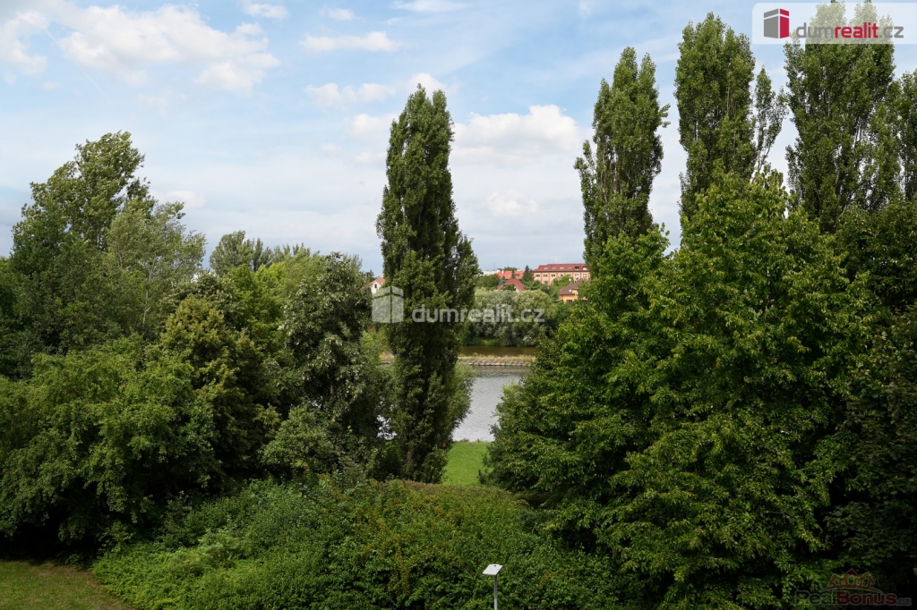 Výhodou bytu je velká zasklená lodžie s výhledem na řeku a přilehlý park.