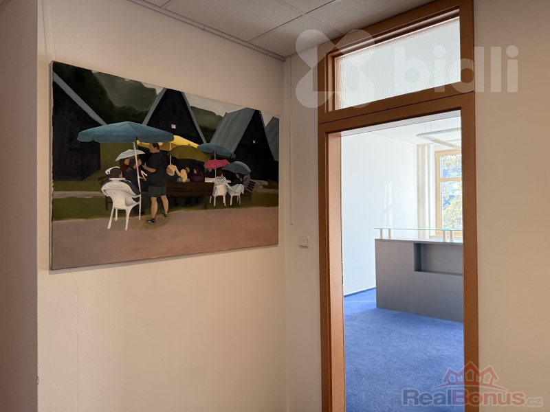 Nabízíme k pronájmu soubor dvou samostatných, vzájemně propojených kanceláří o výměrách cca 21 m2 a 28 m2, doplněný o samostatnou kuchyňku o velikosti cca 3 m2.