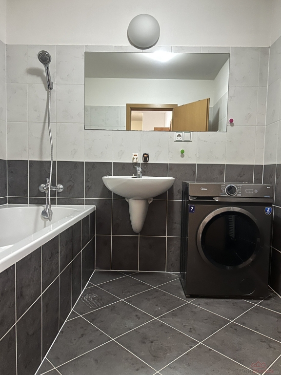 koupelna s vanou a místem pro pračku