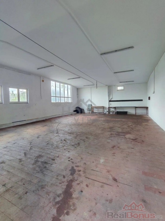 - 2 velké místnosti cca 600 m2, výška stropu cca 8 m, nakládací rampa,