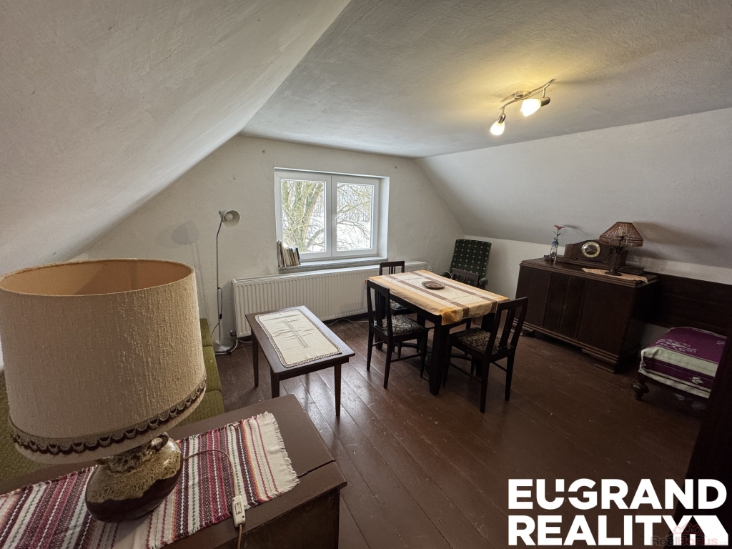 Prakticky řešené přízemí nabízí prostorný obývací pokoj s moderní kuchyní jako hlavní obytný prostor domu. Druhý pokoj disponuje vlastním kuchyňským zázemím, což umožňuje variabilní využití ? například jako samostatný hostovský apartmán, vícegenerační bydlení nebo kombinaci bydlení a rekreace. Dále je zde koupelna a samostatné WC. Podkroví přístupné po schodišti nabízí další dva pokoje s příjemnou atmosférou. Dům je z poloviny podsklepen a disponuje vstupem na půdu.