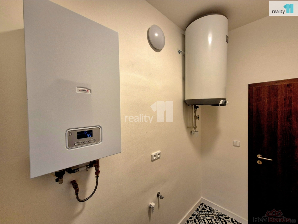 Součástí bytu je také technická místnost s elektrickým kotlem a bojlerem, kde je místo pro pračku i sušičku, a dále prostorná sklepní kóje.
