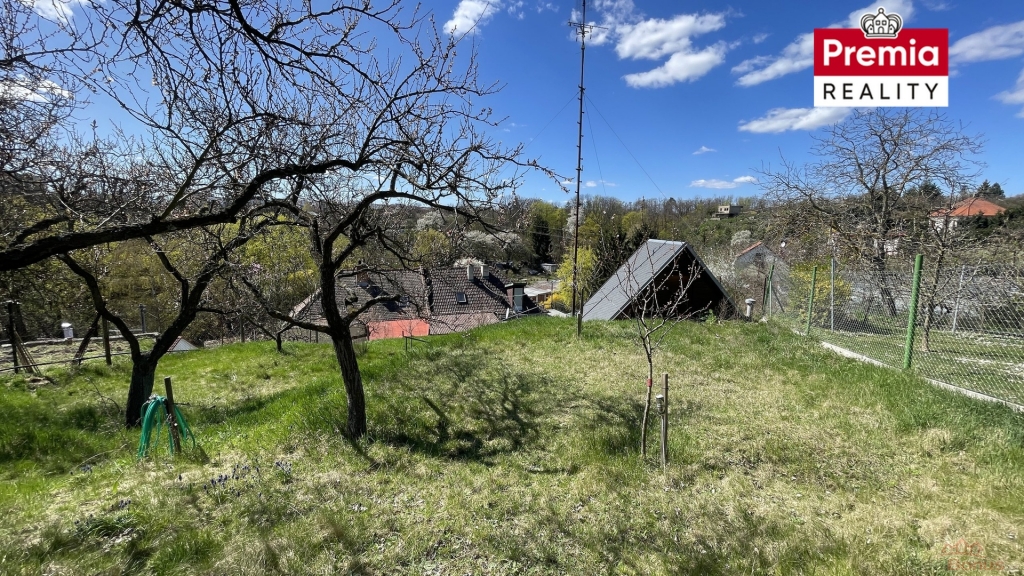 Prostorná zahrada se nachází v okolí domu a je v současné době převážně zatravněná. Před domem jsou okrasné záhony a v zadní části různé ovocné i okrasné stromy. Za domem je také vinný sklep zasazený do svahu horní zahrady. V levé části pozemku je prostorná garáž s dílnou. Za garáží se nachází další zastřešený úložný prostor. Před vstupem do sklepa je menší vydlážděná terasa s pergolou.