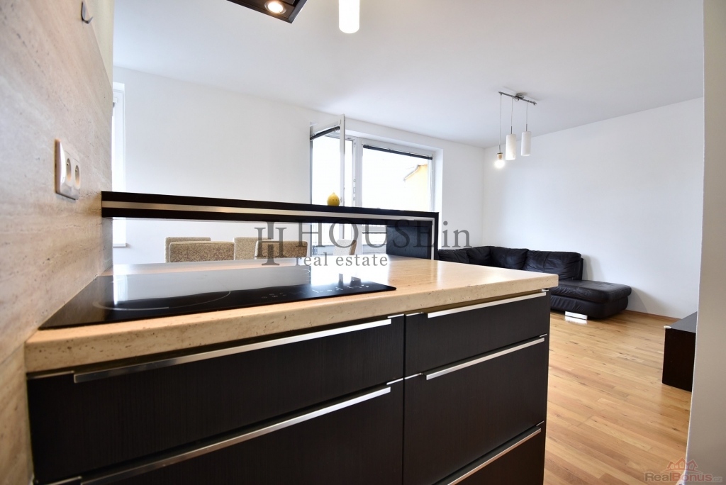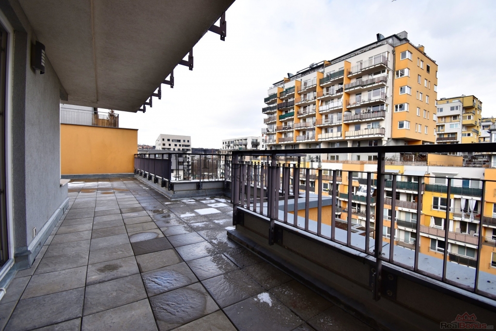 Nabízíme k dlouhodobému pronájmu částečně zařízený byt 3+kk s obrovskou terasou, prostorným garážovým parkovacím místem a velkým sklepem o velikosti 5 m2. Byt se nachází v bytovém domě v ulici Kabešova, Praha 9 ? Vysočany, jen pár minut od nádraží Praha ? Libeň a oblíbené cyklostezky podél říčky Rokytky.