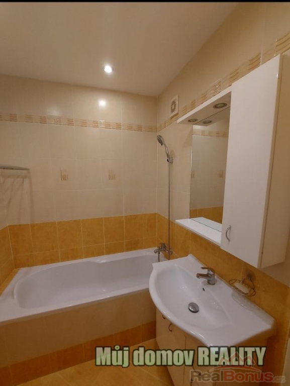 Koupelna je vybavena vanou, umyvadlem se skříňkami, vyhřívaným zrcadlem a novou pračkou. WC má bidetovou spršku s regulací teploty vody.