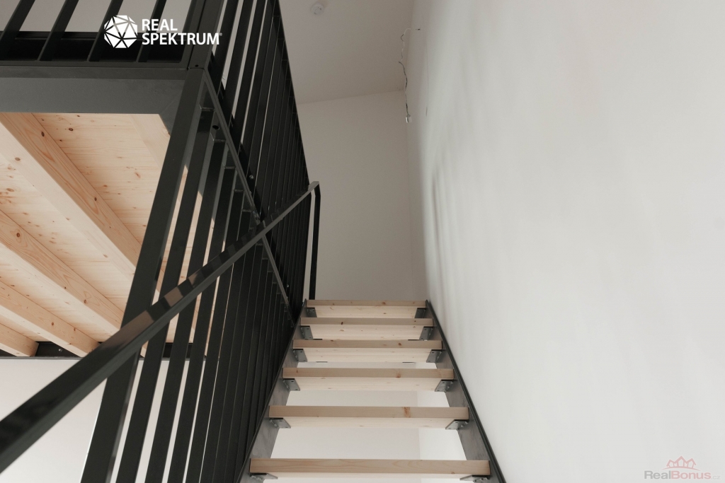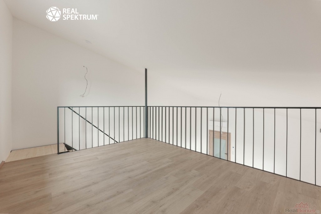 Součástí dispozice je galerie o velikosti 10,3 m2, umístěná nad částí obytného prostoru. Lze ji využít jako ložnici, pracovnu nebo zónu pro odpočinek. Díky tomu byt působí velkoryseji než běžné 1+kk a nabízí praktické oddělení denní a noční části bez ztráty prostoru v hlavní místnosti. Okno v obytné části zajišťuje přirozené osvětlení jak spodní části bytu, tak galerie.