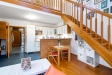 - světlý obývací pokoj s kuchyňským koutem do L a barovým pultem (indukční varná deska, elektrická trouba, digestoř, lednice s mrazákem, myčka)